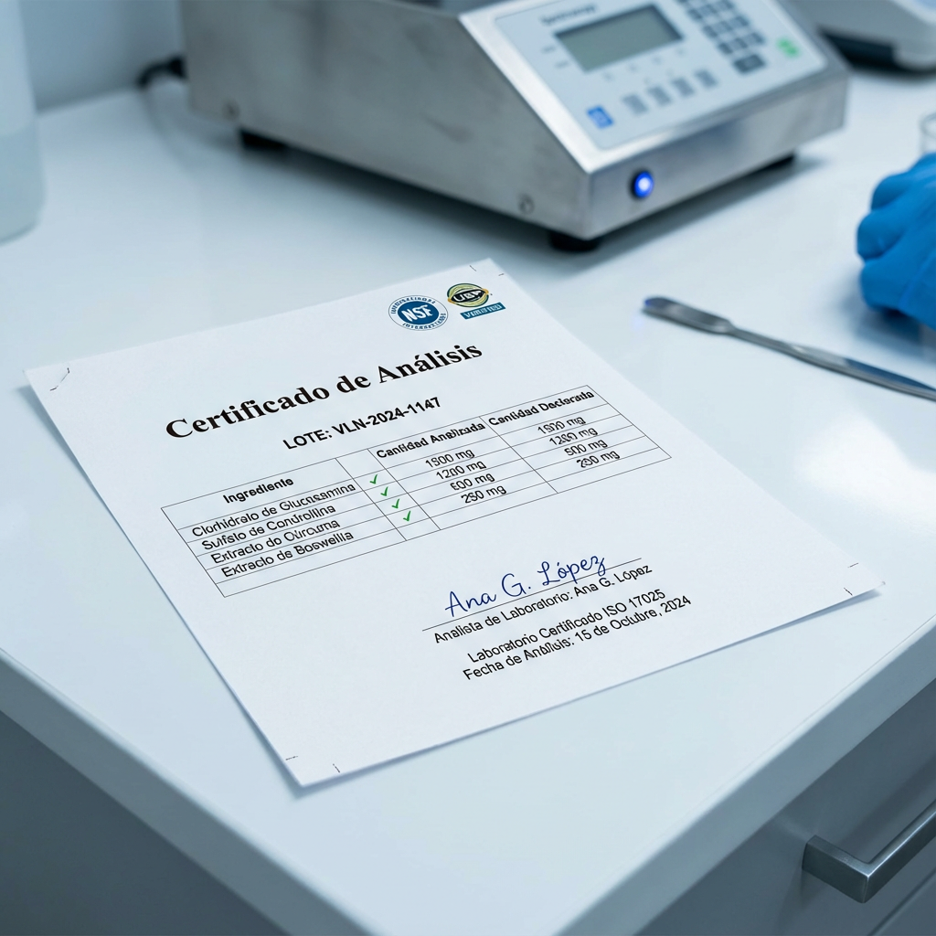 Después de Artri King, entendemos por qué dudas. Por eso cada lote pasa pruebas de laboratorio independiente (NSF/USP) — sabes exactamente qué contiene, sin drogas ocultas.